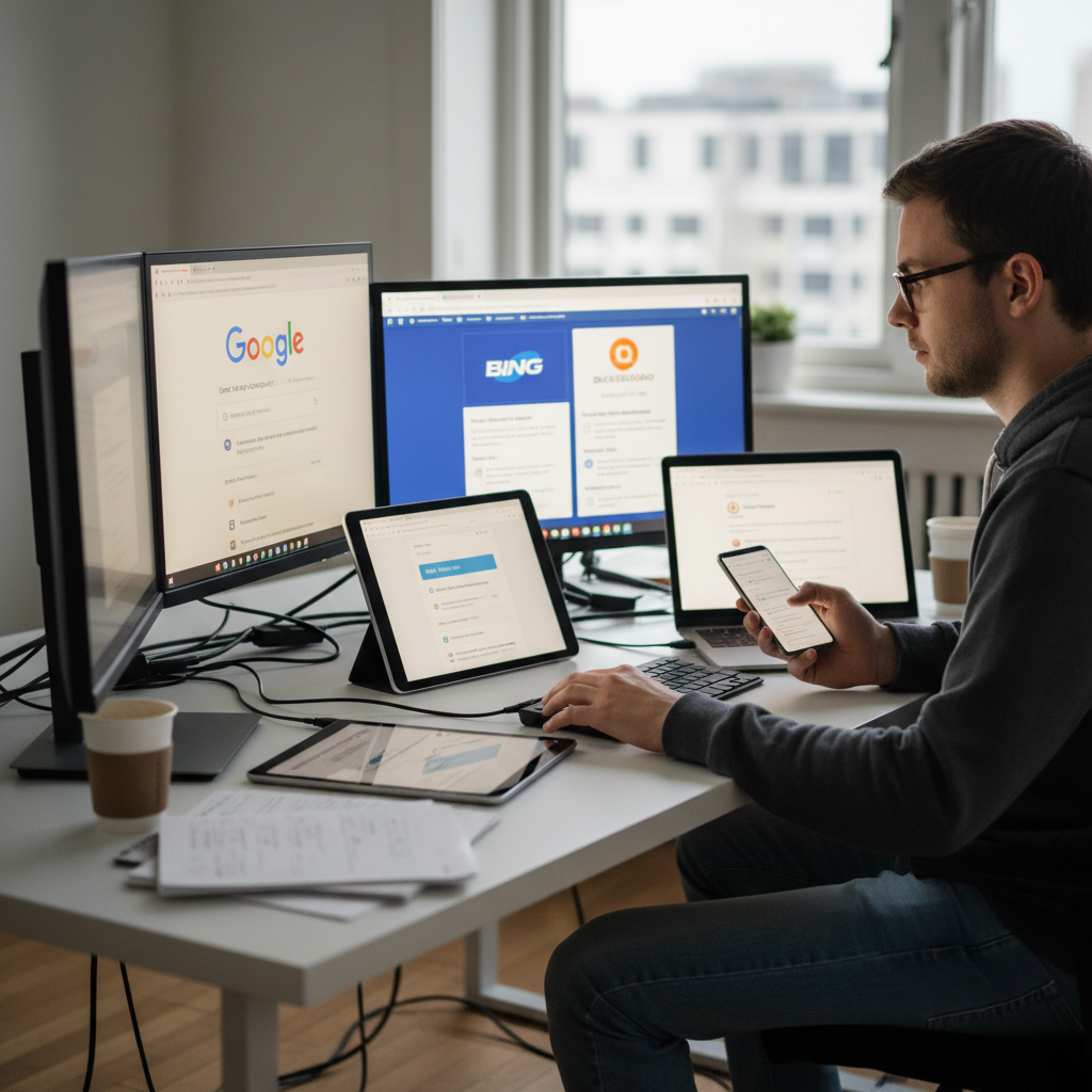 - Wybierz odpowiednią wyszukiwarkę: Google to nie wszystko – używaj DuckDuckGo, baz naukowych, wyszukiwarek specjalistycznych.